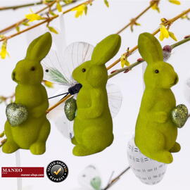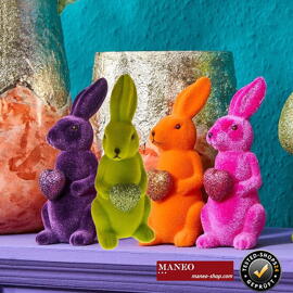 Hasen 13 cm, beflockt mit Glitzer-Herz, je 3 Stck. – in 4 Farben TOPSELLER